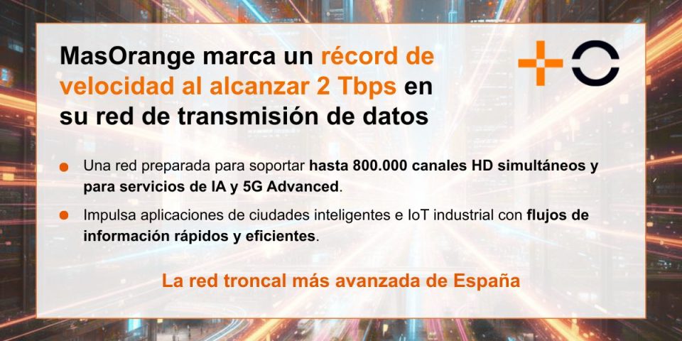 MasOrange, el operador líder en España por número de clientes, ha completado con éxito la primera transferencia de datos a nivel mundial a 2 Tbps sobre una…