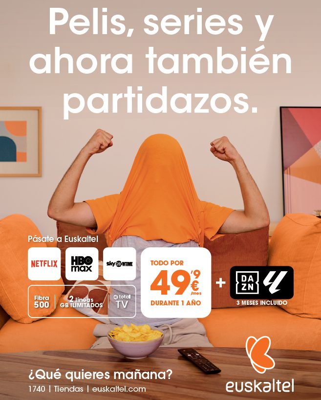 Los clientes que contraten con Euskaltel el paquete de fútbol de DAZN podrán disfrutar, por solo 10€/mes durante el primer año, de los cinco partidos semanales en las 35 jornadas de LALIGA EA SPORTS que emite la plataforma en DAZN LALIGA 1 y DAZN LALIGA 2 (siempre a través de un descodificador del servicio de tele de Euskaltel).