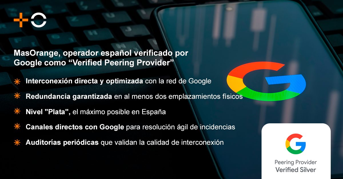 MasOrange, el mayor operador de telecomunicaciones en España por número de clientes, ha obtenido la certificación Google Silver Verified Peering Provider.