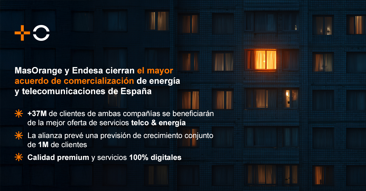 MasOrange, operador líder en España por número de clientes, y Endesa, una de las principales compañías eléctricas del mercado ibérico,han alcanzado un acuerdo para la comercialización en España de energía y telecomunicaciones.